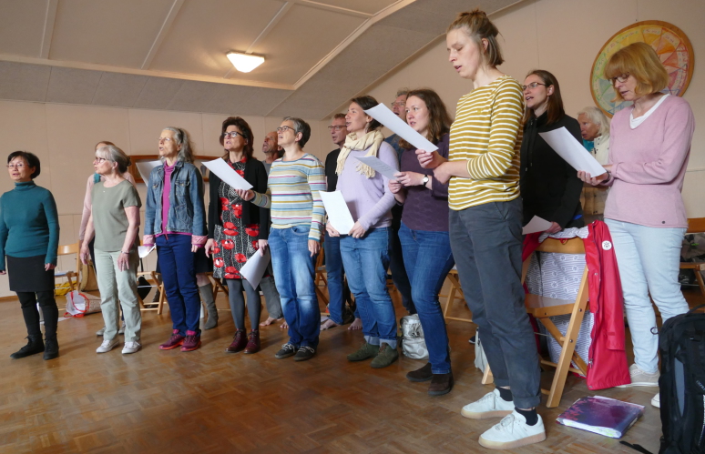 We meet in the pavilion of the Waldorf School Wiehre (Schwimmbadstr. 29) for choir practice on Wednesdays from 6.00 pm to 7.30 pm.